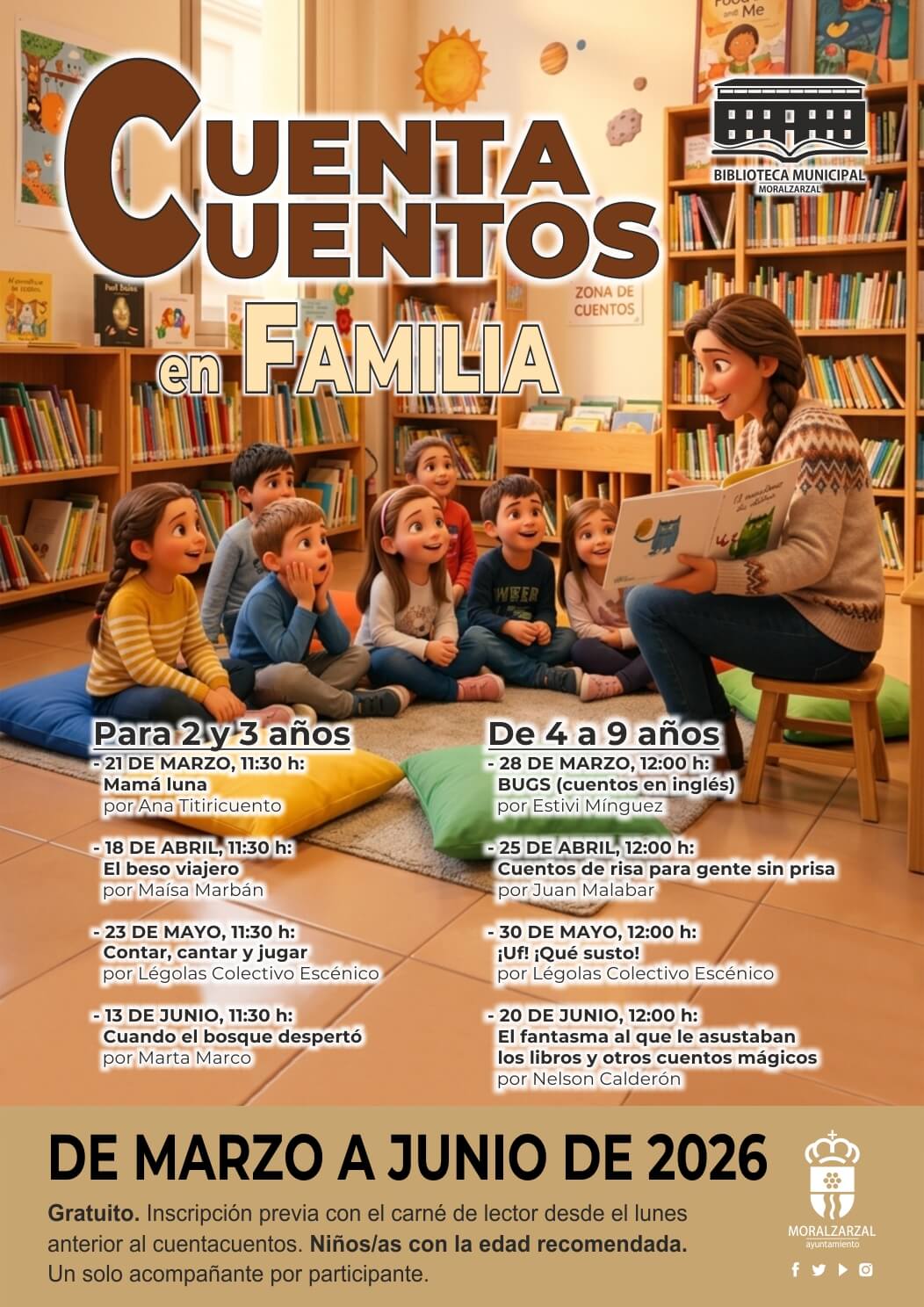 Llega Cuentacuentos en Familia: la palabra, el juego y la imaginación llenarán la sala infantil de nuestra Biblioteca Municipal de Moralzarzal durante los próximos meses.