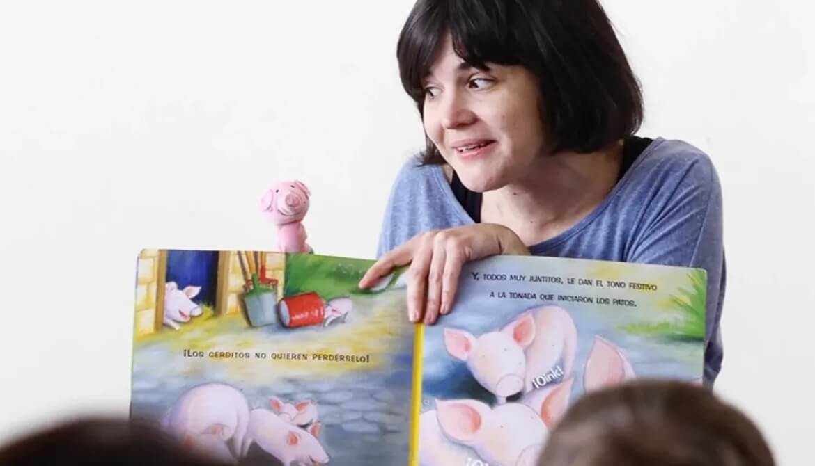 «Cuento cuentito, chico, chiquito, ábrete un poquito porque queremos leer, cantar y jugar. Y todas las familias están invitadas a entrar. ¿Te vienes?».