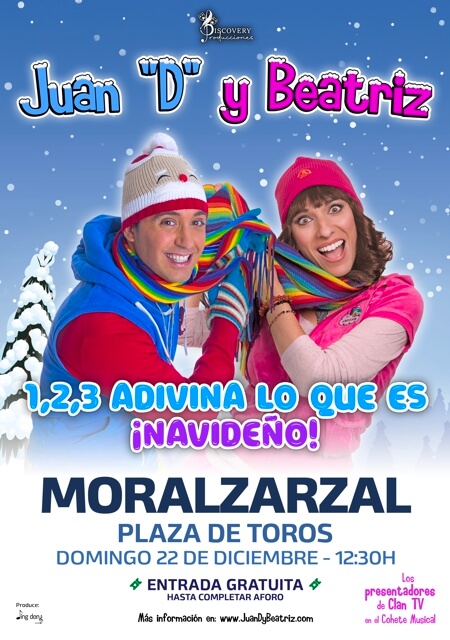 No te pierdas esta navidad en Moralzarzal la actuación musical para toda la familia de Juan “D” y Beatriz, “1, 2, 3, Adivina lo que es”, el domingo 22 de diciembre a las 12,30 horas en la Plaza de Toros.