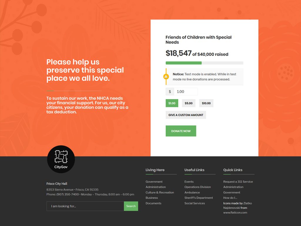 CityGov theme is compatible with GiveWp plugin. GiveWP is the highest rated best supported donation plugin for WordPress. GiveWP provides a powerful donation platform optimized for online giving.