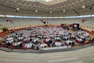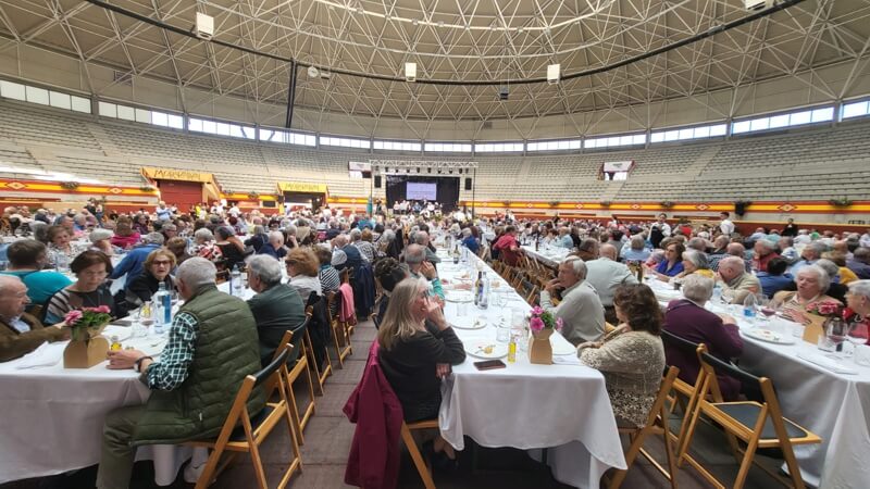 Tradicional comida homenaje que el Ayuntamiento de ofrece a sus mayores tiene lugar todos los años en el mes de abril en la Plaza de Toros Cubierta.