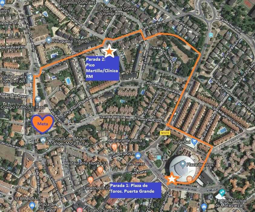 - Los puntos de encuentro serán en la Puerta Grande de la Plaza de Toros y en la Glorieta de Pico Martillo.