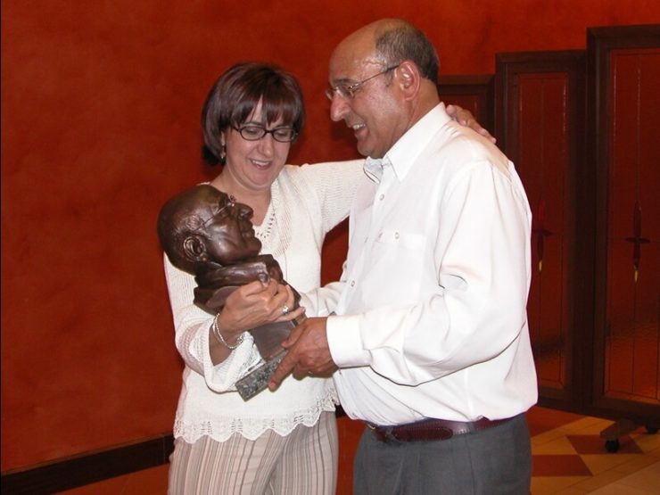 Mari Luz Segovia, en nombre del grupo de exalumnos organizador, entregó a Don Manuel una escultura que representaba al maestro y en las primeras páginas de ese primer libro que se editó, quedan recogidas las palabras que Juan Fco. Albertos, también en nombre del grupo de exalumnos, dedicó a Don Manuel en nombre de todos ellos y que reproducimos a continuación.