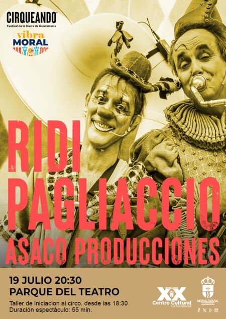 Ridi Pagliaccio es una propuesta de un clásico dúo de payasos, inspirada en el Aria “Vesti la giubba” de la ópera “Il Pagliacci”. En ella, dos hermanos, un carablanca y un augusto, intentan hacer ópera y descubren el destino trágico del clown: hacer reír, incluso con el corazón roto. El espectáculo promete risas, lágrimas, música, amor, canto y muchas payasadas para toda la familia. Cabe destacar que los espectáculos de “Cirqueando” están incluidos en la Red de Teatros de la Comunidad de Madrid.